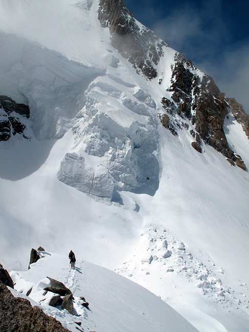 Ive on the Cosmiques, the NW shoulder of Mont Blanc behind. The summit is just out of view to the left. |