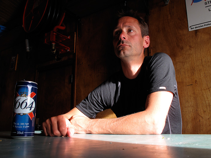 Ive seriously anticipates his next sip of 1664 in the Gouter hut. |