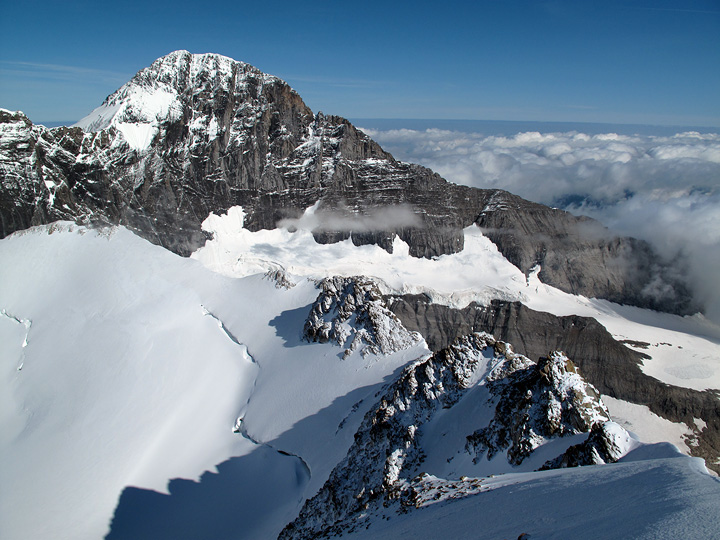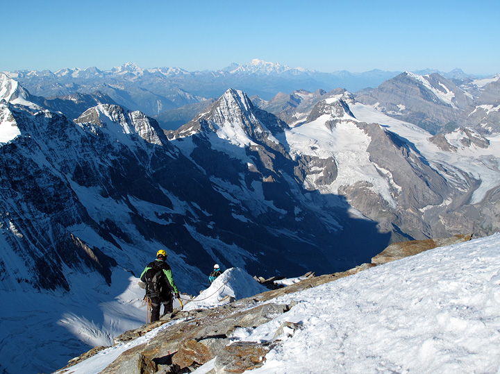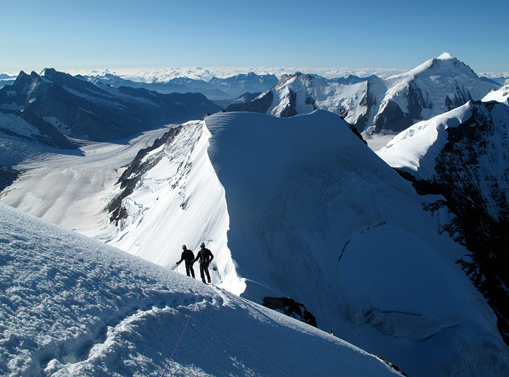 Looking down the SE Ridge with the Finsteraarhorn in the background. |