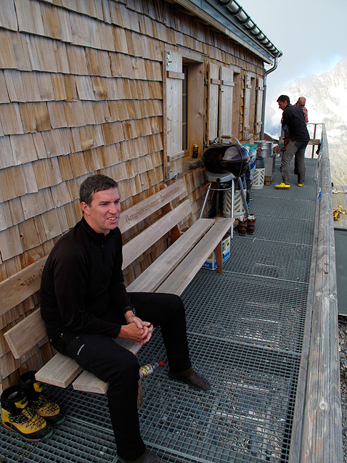 For our last climb, we chose the Traverse of Mont Blanc. With a very leisurely start (and a bit of a beak afer the Eiger) we take a late-afternoon cable car up the Aiguille du Midi, and finish with a short, 30 minute walk to the Cosmiques hut. |