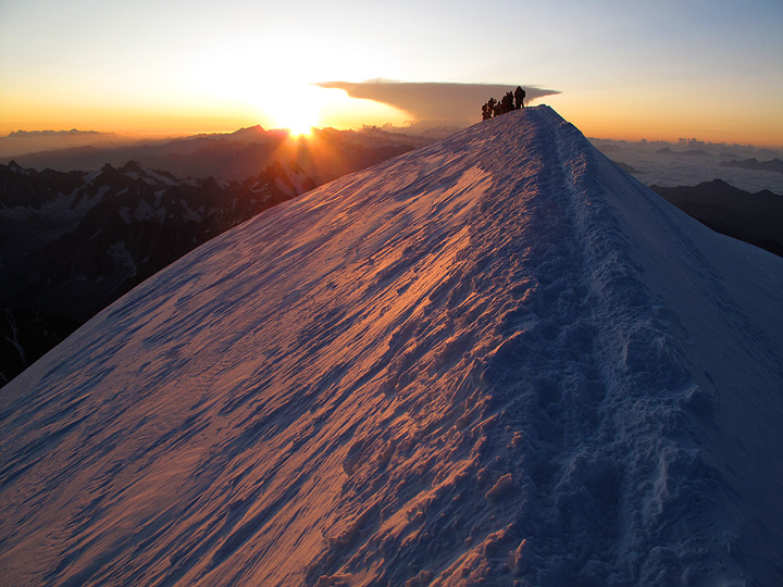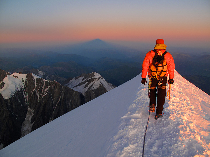 And it is time to start down. You can see the shadow on Mont Blanc in the distance. |