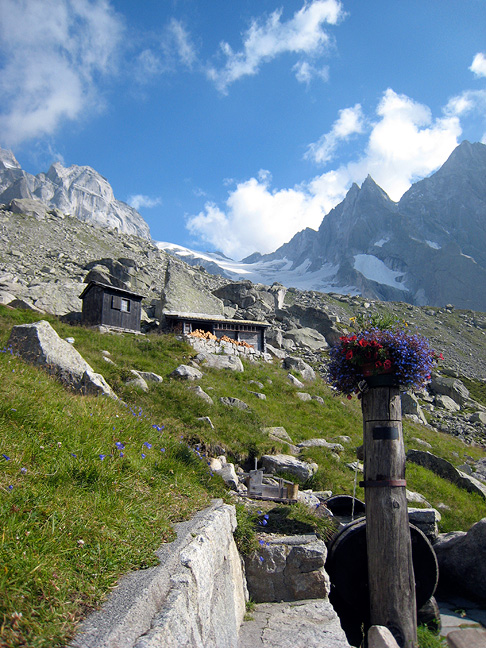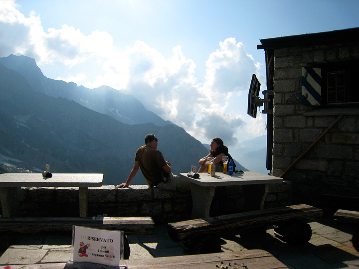 Approaching the Sciora hut, on a very steep trail. The heat was a bit more than we had bargained for. |