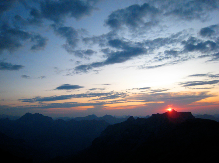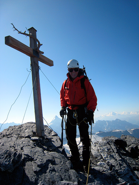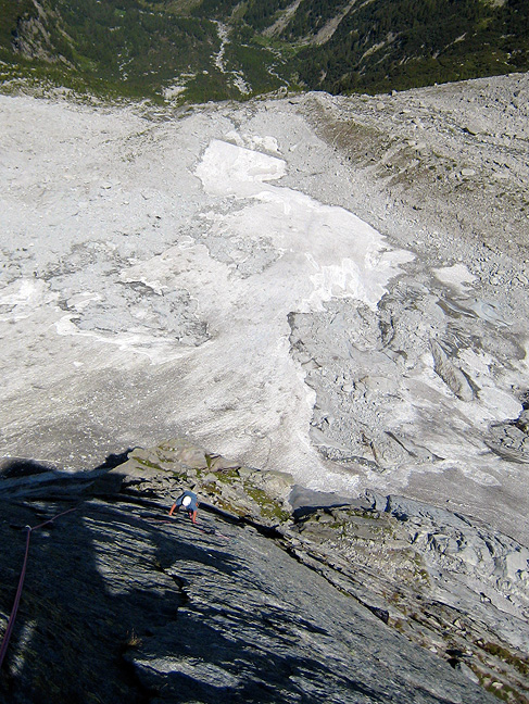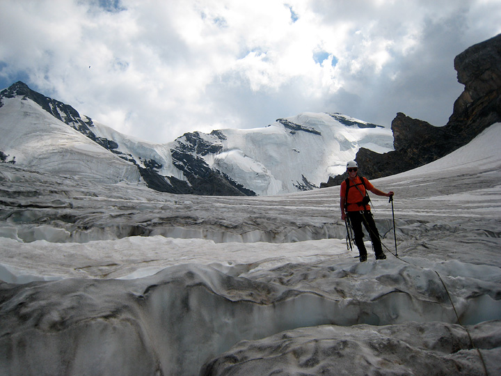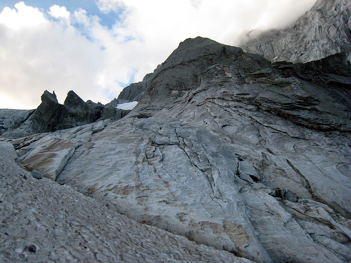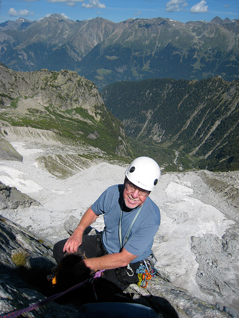 We left the hut early the next morning for a climb of the Bügeleisen (or "Flatiron) on the Gemelli. |
