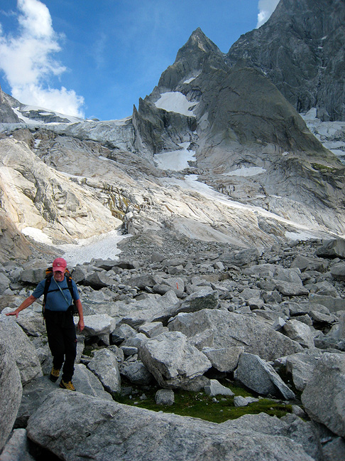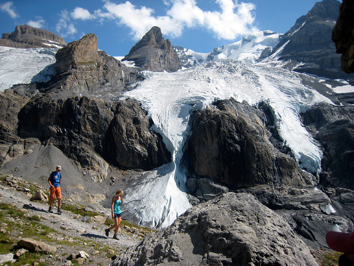 Onward and upward, we made our way to the Blüemlisalp hut, past the impressive lower reaches of the Blüemlisalp glacier. |