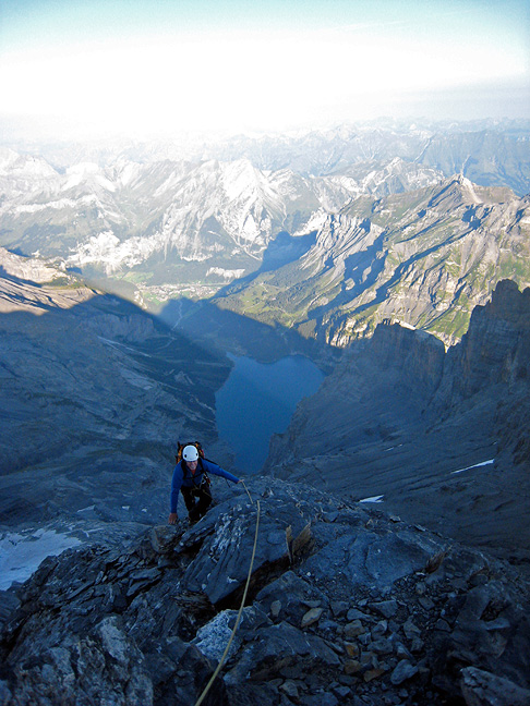 Our next plan was the Blüemlisalphorn, the middle summit of the triple-looking peak here in the background. |