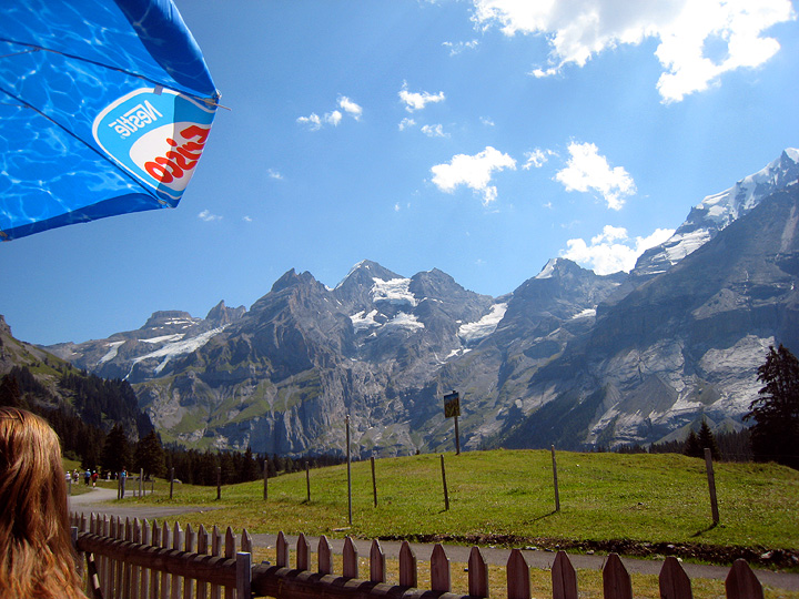 A welcome respite from the heat, the little restaurant of the Oberbärgli saved our day with its shade umbrellas and milkshakes made from local cows milk produced on site. Mmmm... |