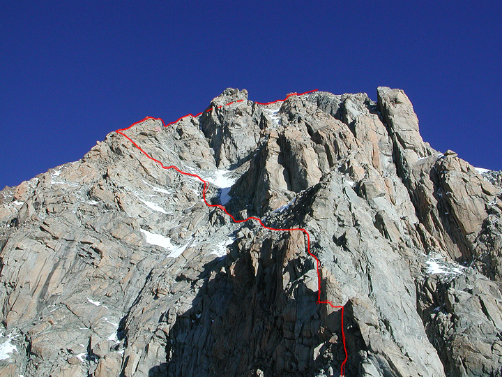 This photo, also 5 years old, was taken from the summit of Point Eccles. It shows some of the upper route on the peak, though the entire image is quite fore-shortened. |