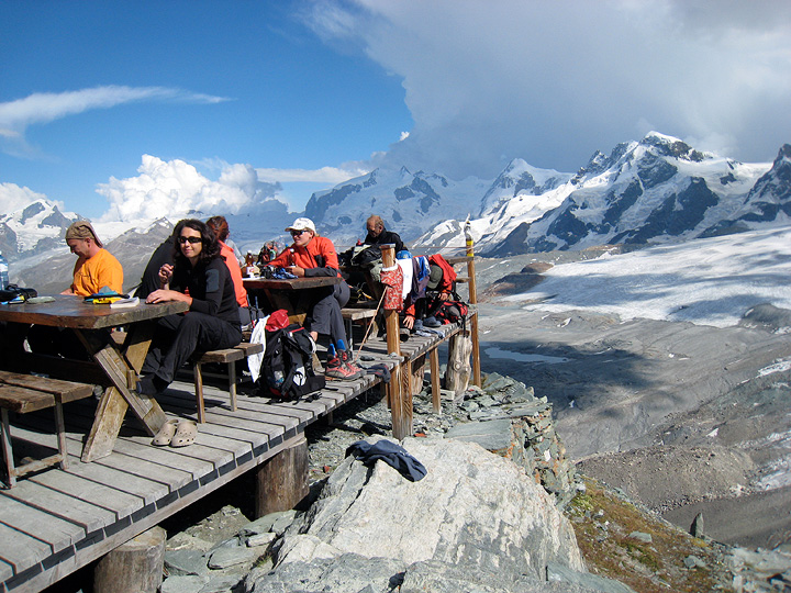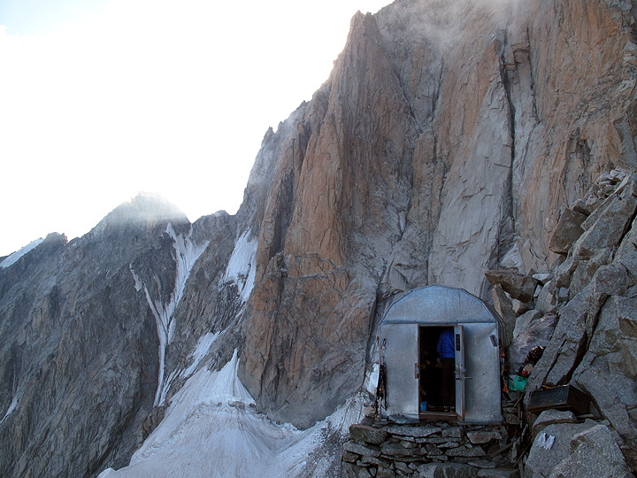 The Eccles hut. We shared the hut with a French guide and his German client (doing the Brouillard Ridge) and a Swiss guide and client pair also planning the Innominata. |