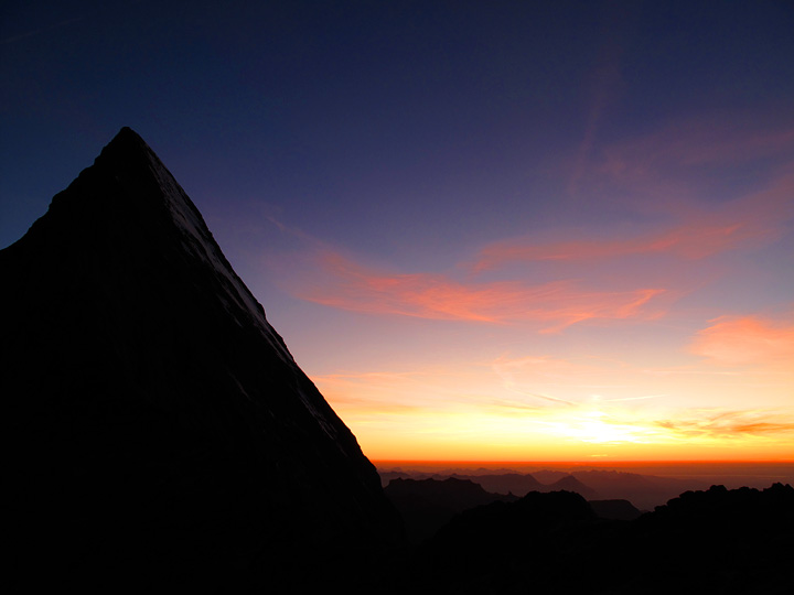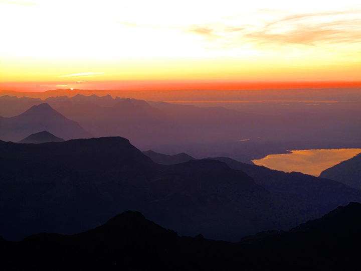 Sunset from the Mittellegi hut. The lake is the Thunersee. |