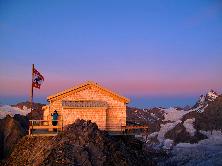 A sunset view of the Mittellegi hut. |