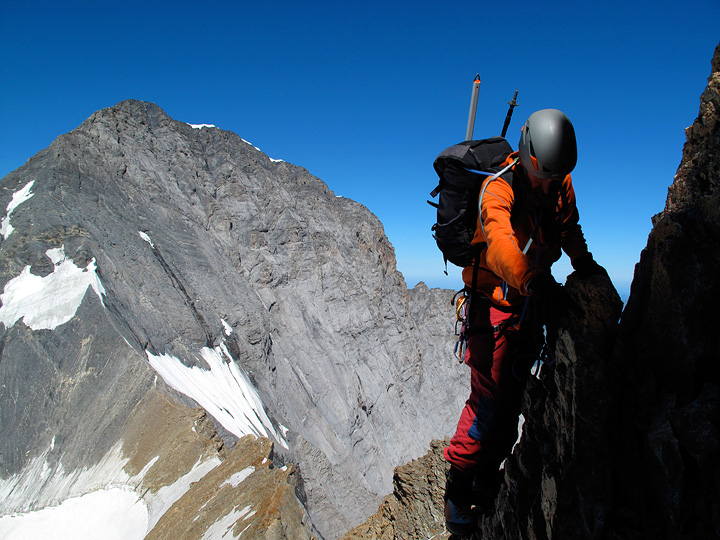 Mike scrambling along the exposed and scenic ridge crest. |