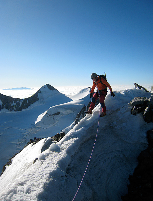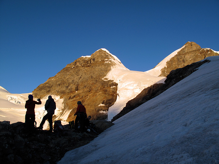 The next morning we climbed Piz Bernina in nearly perfect weather. Conditions a bit dry, but good. |