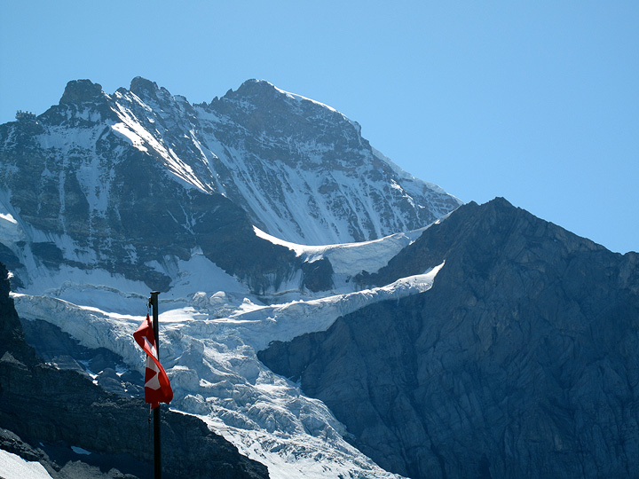 For the following day, we climbed the Jungfrau. Late season conditions were quite icy, but the weather was perfect. |