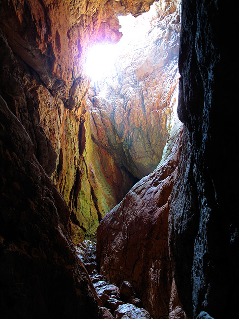 Here is the famous Calanque d'en Vau. Countless classic routes on limestone pillars and faces. Unfortunately, it has been loved almost to death, and many of the routes are quite polished. Back in 1980 we were dropped off here by a boat, with a couple pack-loads of climbing gear and groceries. We'd hide our camping kit in a cave during the day. |