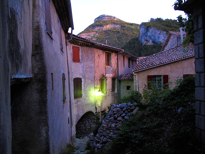 The old town of Orpierre. Very narrow winding streets, arched passages and entry ways.... This is one of those remote French villages that have nearly died, as inhabitants fled to the urban centers. Fortunately, Orpierre has been rejuvenated and, arguably "saved" by the influx of hundreds of climbers. |