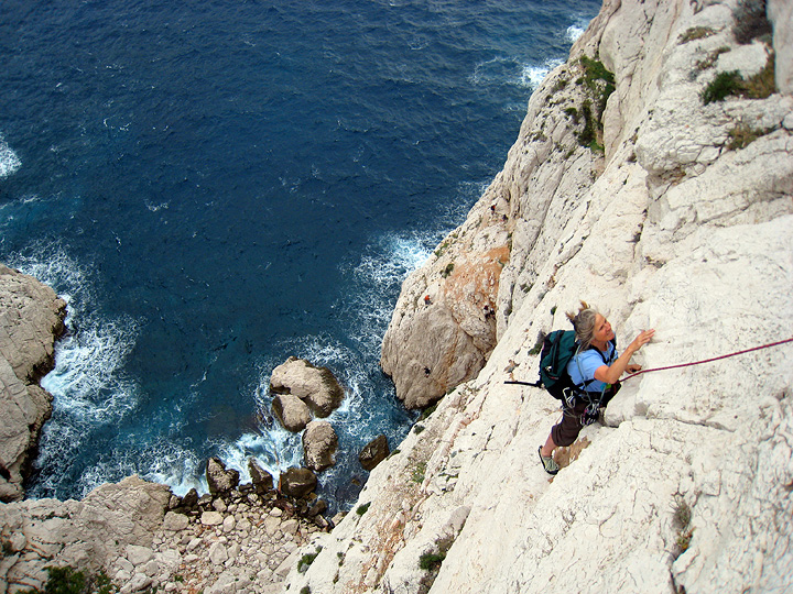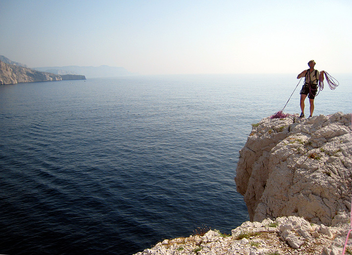 After giving our paddle-weary arms a rest we did a couple more very fun routes on the east face of the Bec de Sormiou. |
