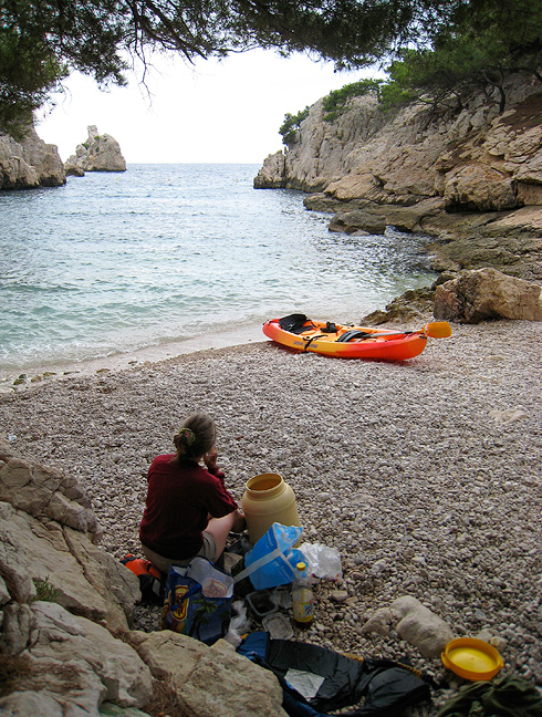Lunch at Morgiou. Fortifying ourselves before the long paddle back to Cassis. |