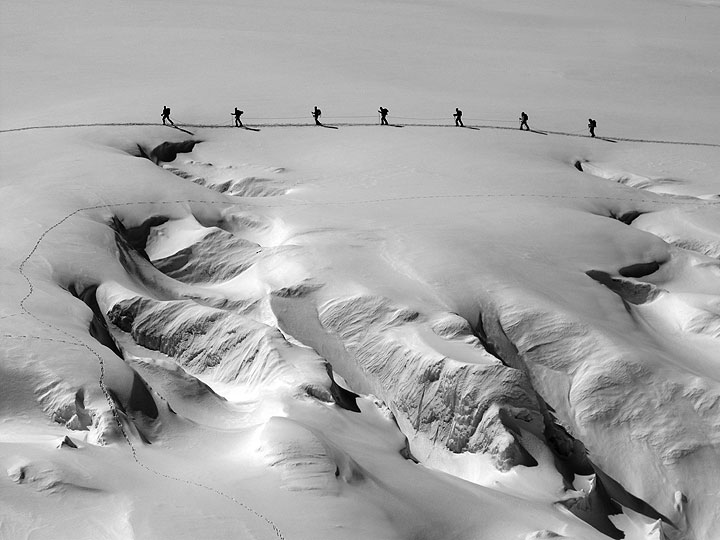 We see some ski mountaineers heading higher up the glacier as we begin our climb. |
