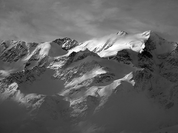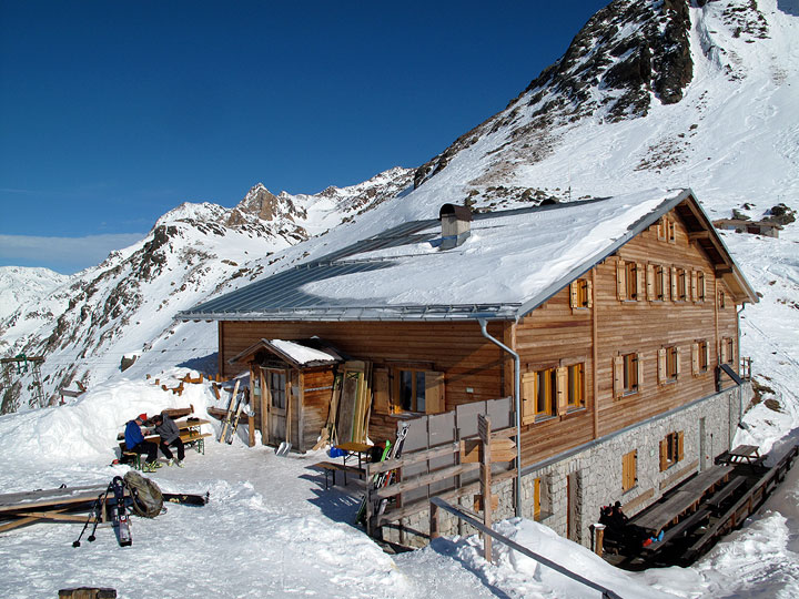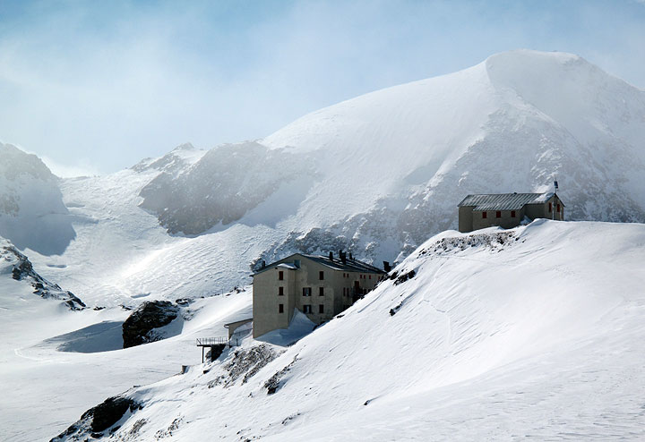 On the second day, Mark continued on with the Steve, John, Andy and Hans. Given good weather and conditions and plenty of energy, they took in an ascent of Palon de la Mare en route to the Branca Hut. Meanwhile, Kathy, Stephen and Bruce traversed the Suldenspitze and the Pasquale-Cevedale col, to meet them at the hut later in the day. |