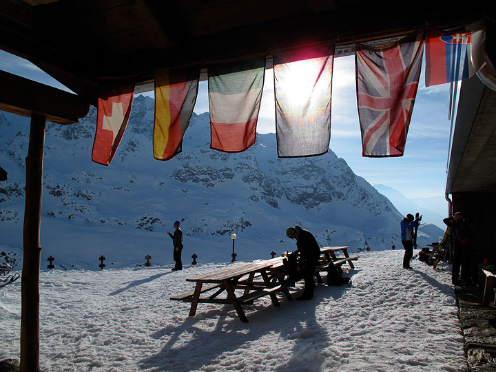The evening light gave us a beautiful back-looking view of Tresero from the Pizzini hut. |