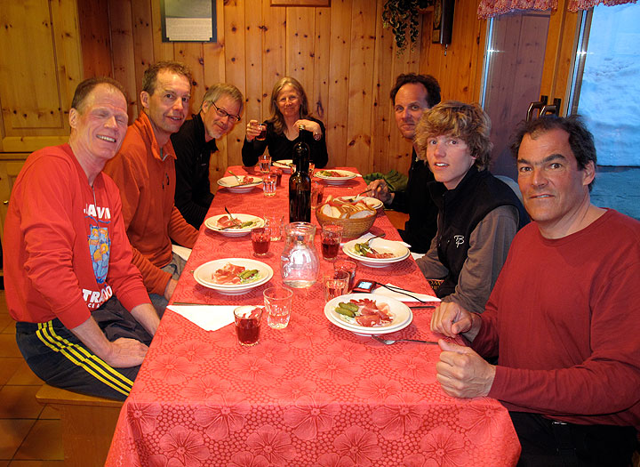 | Steve Kuross, John Bergstrom, Andy Baertsch and Bruce Derauf were back again this year from Minnesota for a private trip to the Ortler region. This time they were joined by their friend Stephen Hunter, and Andy's son Hans. |