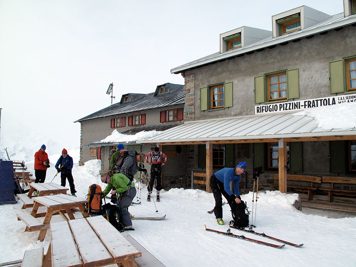 The following day's weather was not so pleasant. We headed straight for our next hut, the Rifugio Pizzini. |