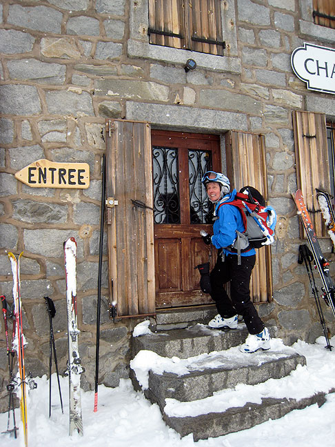 Stormy weather and very heavy snow conditions thwarted our original plan to stay a night at the Argentière hut, but we had a great day skiing at the Grands Montets. We checked out the slopeside restaurant on the "Variante Hotel" run, very cozy. |