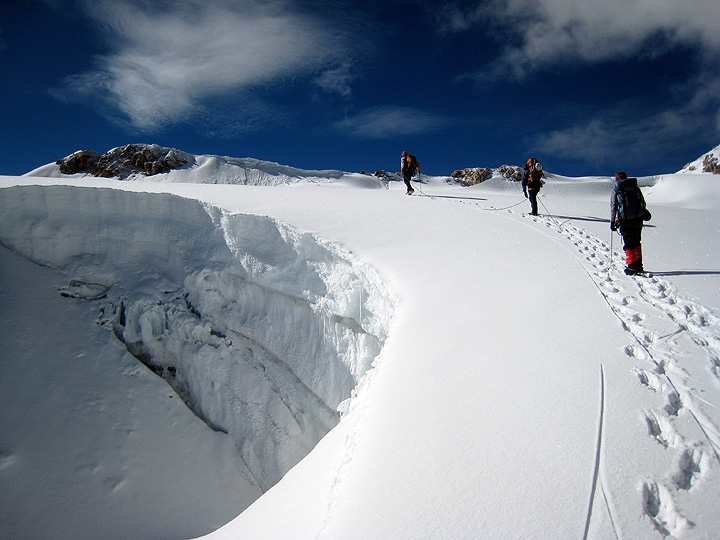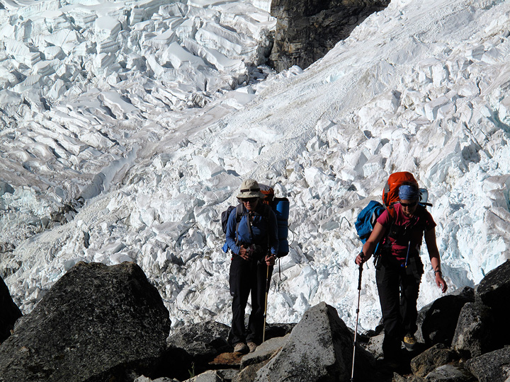 Gaining the glacier on Ishinca. |