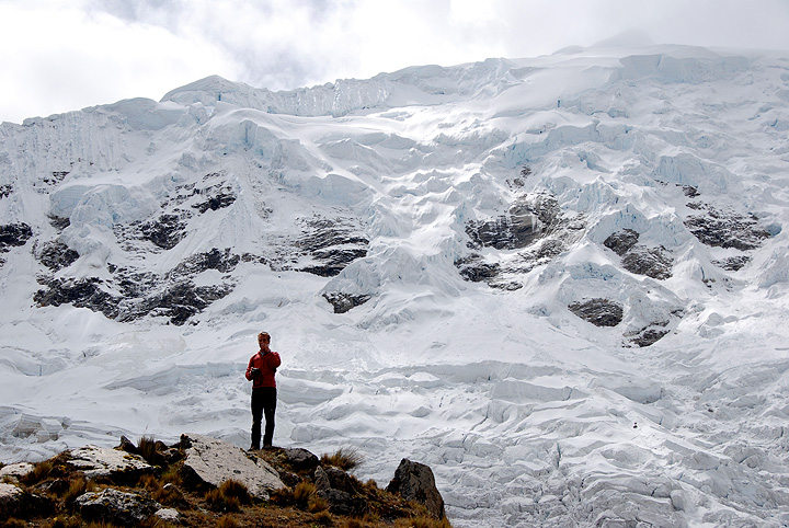 We spent our first full day in base camp hiking to about 5000 meters to get our acclimatization process underway. Ed contemplates the west face of Palcaraju. |