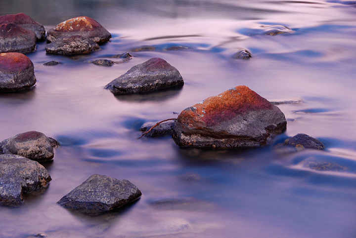 Mark went out at sunset to play with the effects of low light on moving water in the stream running through our camp. |