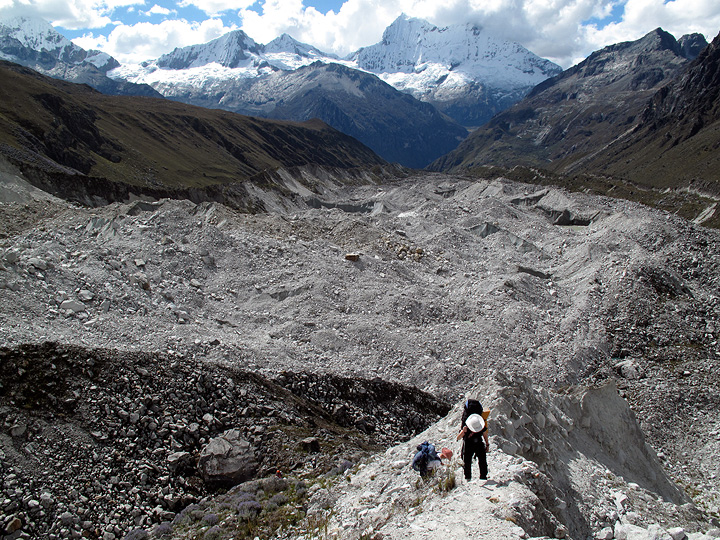 A painful section of moraine on our hike in to camp on Chopicalqui. |