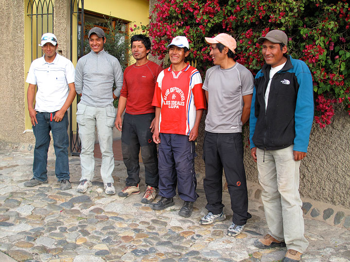 Travelling and climbing with us were our old friends William (left) and Peter (right) Alvarado. Peter is a UIAGM qualified Mountain Guide, and his younger brother William is an Aspirant, hoping to complete his training this October. Together, they own and run Alvarado Adventures, whom we've long worked with on our trips to Peru. Visit Alvarado Adventures' new website. |