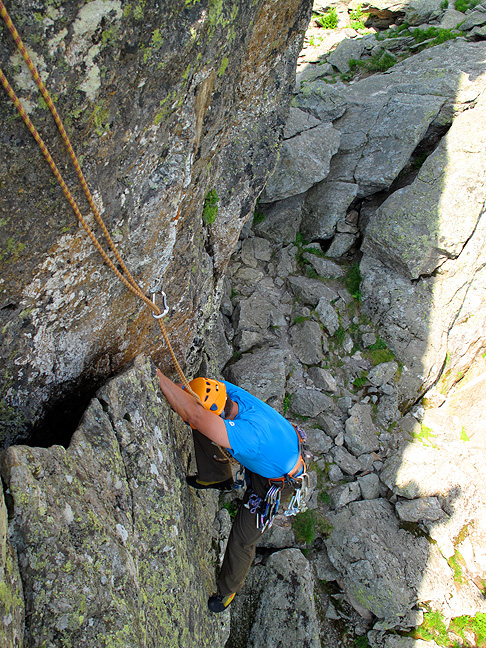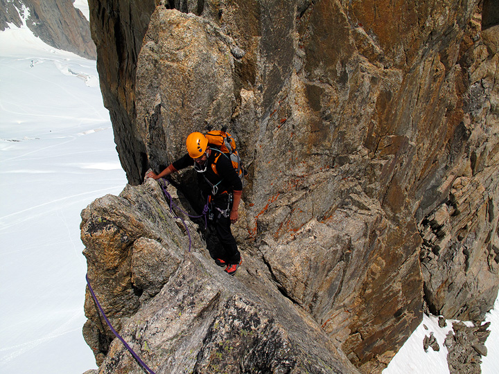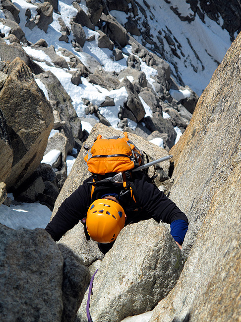 A pitch or two higher. Behind is the Aiguille du Midi. |