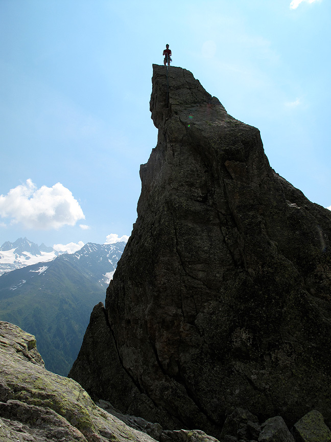 The next day, our third, we went rock climbing again. This time to the Chézerys area above the town of Argentière. We started on the Aiguillette d'Argentière, a small but fun pinnacle. |