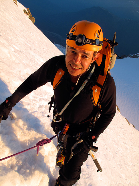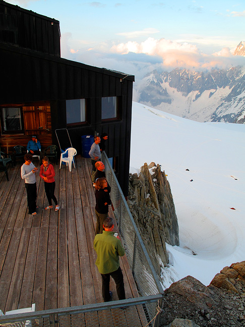We spent that night in the Cosmiques hut, with the goal of climbing the Contamine Grisolle route on the North Face Triangle of Mont Blanc du Tacul. |