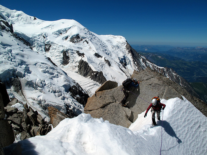 Starting on the Arete des Cosmiques is seldom a bad idea. The route was quite crowded, however. But the weather was fine and we had plenty of time to enjoy the views. |