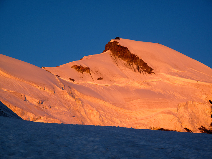 The summit was rather busy, with all the climbers coming up the normal route from Hohsaas. We didn't stay long, wanting to take advantage of the still-firm snow for our descent. |