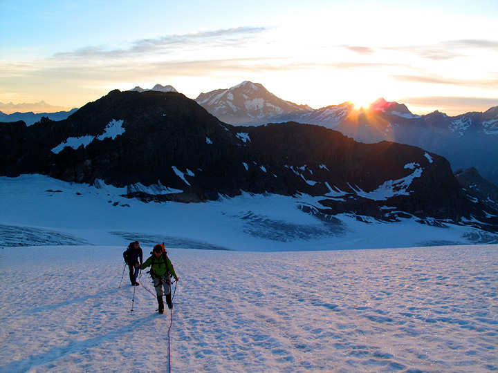Sunrise on our ascent of the Hohlaubgrat. Despite the large number of other climbers in the hut, we got ahead of the pack and had a nice, tranquil ascent. |