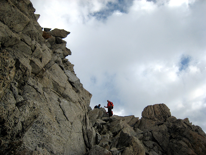 On the summit rocks, we cross paths with parties already descending. |