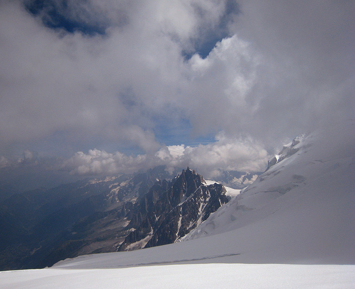 Matt Croy got back over to Chamonix from his home in Connecticut, for a re-match with Mont Blanc — his attempt last year was skunked by very high winds on summit day. He spent a few days doing some training and acclimatization with Kathy, and then they moved on to the summit attempt (successful this time! Yay!). |