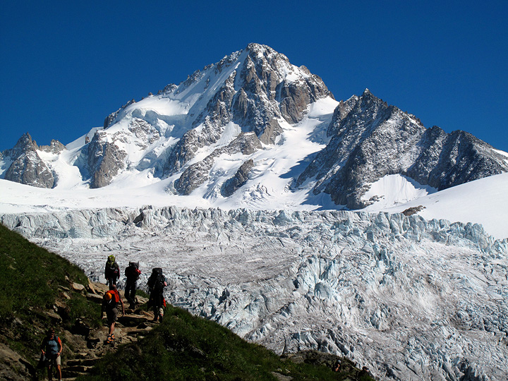 Then we hit the trail to the Albert Premier hut in the afternoon. Recent snowfalls made the Aiguille de Chardonnet look particularly pristine in the background. |