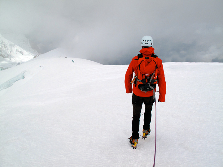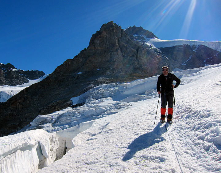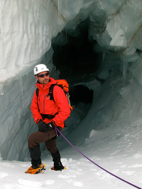 Wim pauses to look at the crevasses we thread among. |