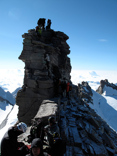 Waiting our turn to clamber up this very popular summit! |