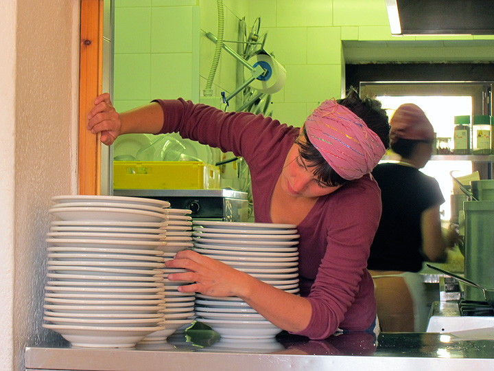 Dinner preparations are under way in the kitchen. |