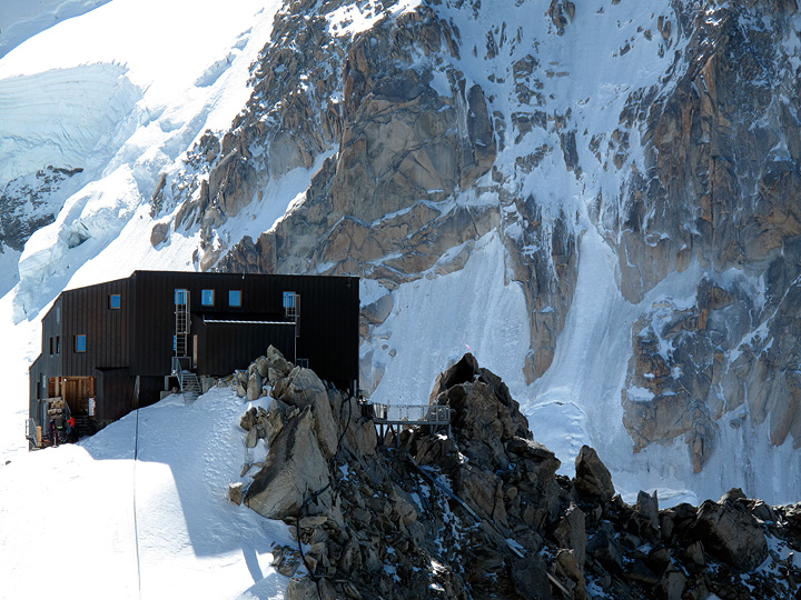 The Cosmiques hut, with the cold north face of Mont Blanc du Tacul behind. |