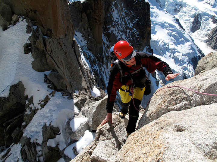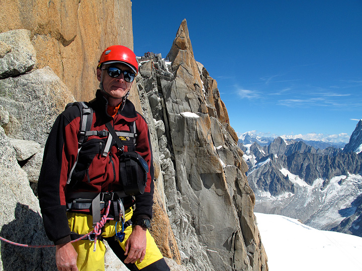 Mihai on the Arete des Cosmiques. We had a great day with perfect weather and conditions, with the route almost all to ourselves. |
