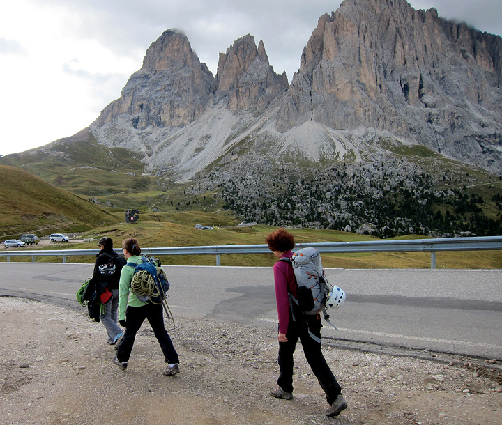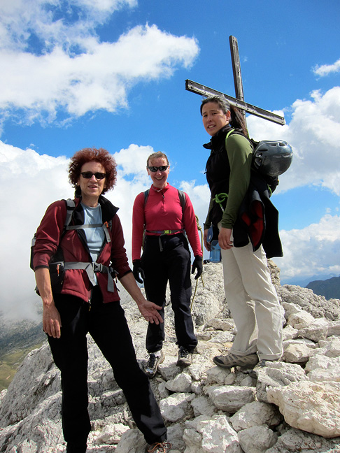 | Gini Kramer and Sandy Bartell were back climbing with Kathy, this time in the Dolomites, and they brought along their friend, Audrey Suseno. |