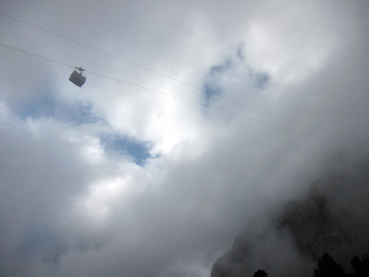 When it began raining again, we took the cable car up to the Lagazuoi hut for lunch. |