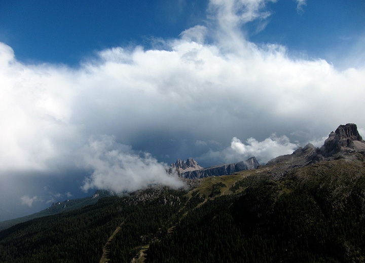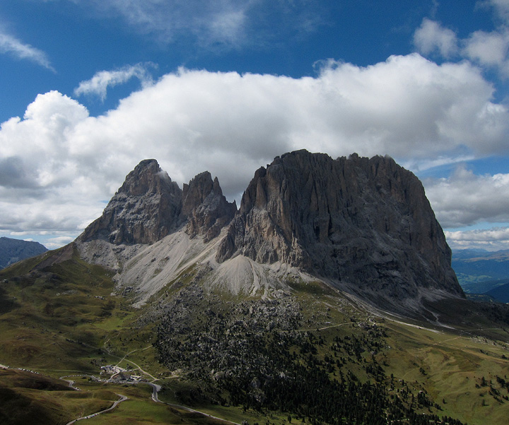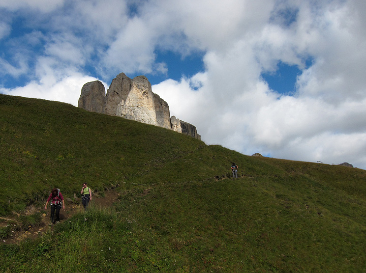 Lovely views across the pass to the Langkofel, Fünffingerspitzen and the Grohmannspitze. |