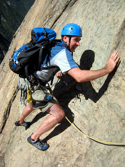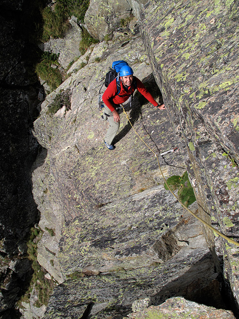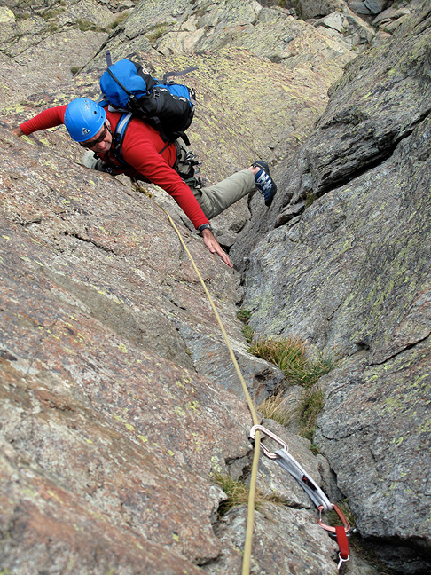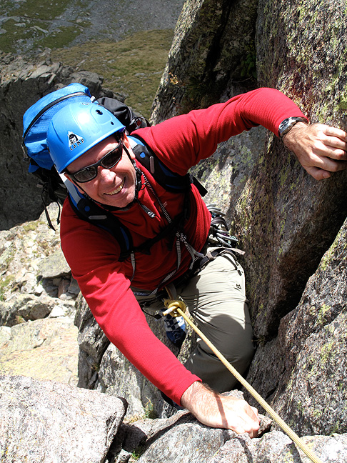 Most of the route is pretty straightforward, but there are a few pitches close to the summit that are dramatically exposed. |